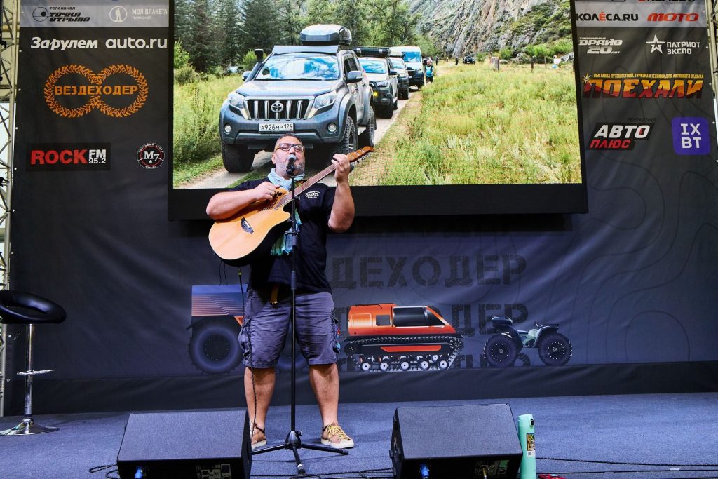 Я выступил на главной сцене выставки, спел свои песни (можно скачать мр3 тут) и рассказал про свою большую экспедицию «Алтай-Монголия 2025», которая состоялась летом этого года.